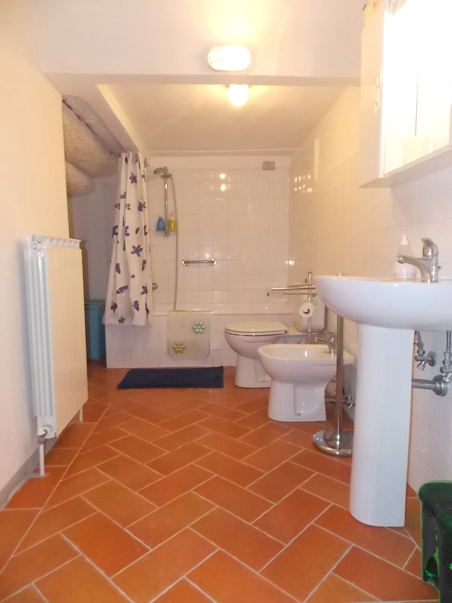 L'appartamento si trova al piano terra e ha l'ingresso nell'atrio. E' composto da una cucina completamente attrezzata, con spazio per il pranzo, il salotto, che può essere trasformato in seconda camera da letto, la camera da letto e il bagno (con la vasca da bagno).